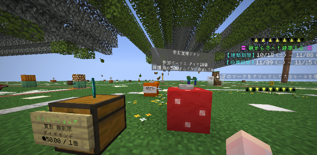 ・建築大会ですので団体部門trust者はbuildを行ってください。名義のみで本大会建築実績がないと判断した場合、該当プレイヤーへのどんぐり及びアイテム配布は行いません。